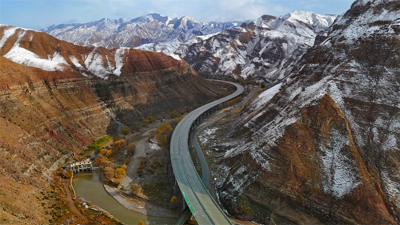 冬日的西營(yíng)河12號(hào)特大橋宛如一條銀龍,蜿蜒于銀裝素裹的山巒之中。路,走向更遠(yuǎn)的遠(yuǎn)方。