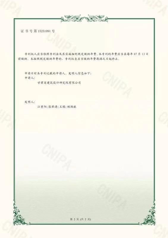 建筑設計院一技術再獲國家實用新型專利