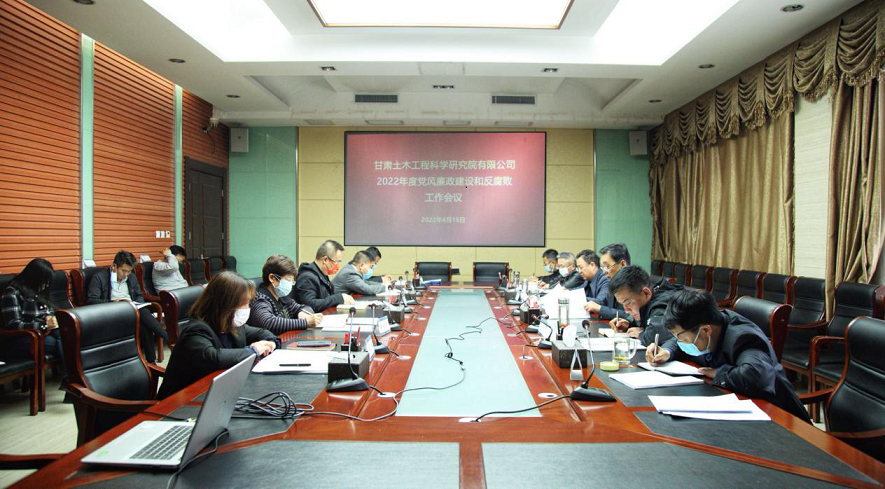4月15日,甘肅土木工程科學研究院有限公司召開2022年黨風廉政建設和反腐敗工作會議。土木工程院領導班子成員,各黨支部書記、職能部門負責人等參加會議。
