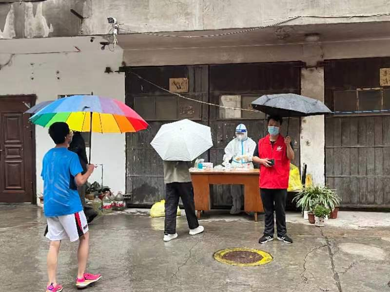 在高風險社區,規劃設計院第十六黨支部入黨積極分子劉偉正在執行“封門”任務。“一接到確診通知,我們就要連夜對密接住戶施行管控措施,工作時間是24小時隨時待命,防護服穿脫太麻煩,累了我找地方靠一會兒就行。”孫偉略帶疲倦地說道。高風險區意味著與病毒更近距離的接觸,對志愿者的規范操作要求也更加嚴格。每一次敲門、登記、核對人數、掃碼做核酸等看似簡單的流程,他都會在腦海里反復演練。突然的封門,會有一些居民鬧情緒,面對激烈的言辭,他總能耐心安撫,爭取居民對防控措施更多的理解和支持。空閑時,他會拎著大袋小袋,給住戶送些必備物資,提醒他們做好防護,做些力所能及的事情。勇者不孤,劉偉僅僅是這支隊伍中的一分子,還有像武利平、楊致遠、姚友龍、劉澤靖、孔利兵、巨斌、楊一、劉偉、滿子熠、李文磊、仲乃河、蘇曉文、魏翔等像他一樣的志愿者,正在社區疫情防控一線,默默地貢獻著自己的力量。他們有的是企業中層“一把手”,有的是建筑師,有的是規劃師,有的是財務管理人員……,但穿上白色的防護服、換上紅色的馬甲,他們就有了一個共同的名字——疫情防控志愿者。