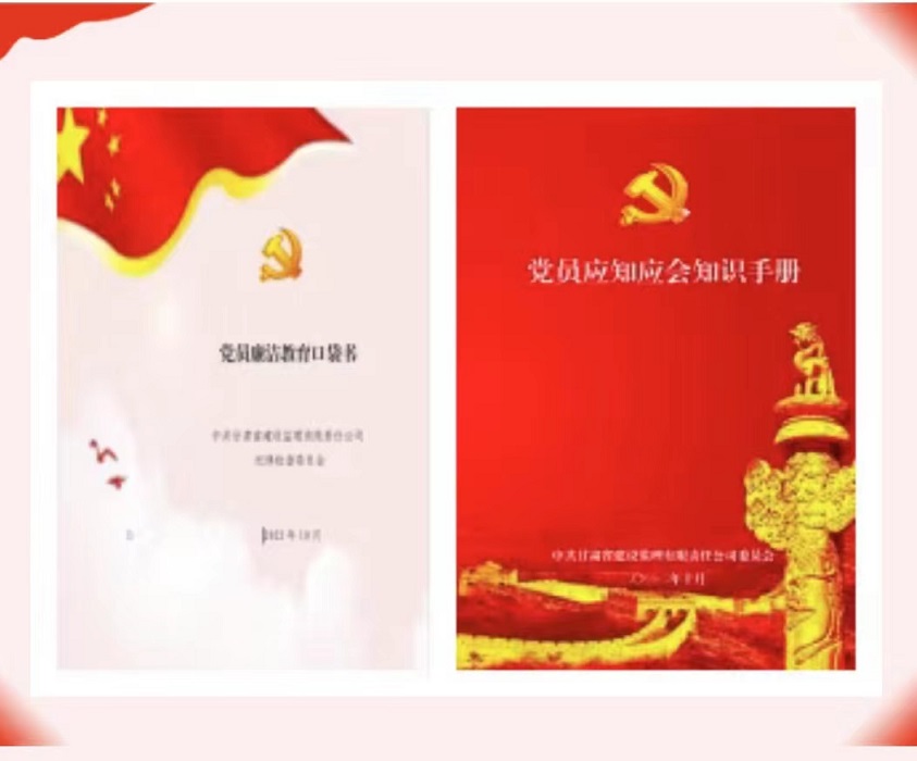 活動中,建設(shè)監(jiān)理公司黨委還為黨員精心制作了《黨員廉潔教育口袋書》及《黨員應(yīng)知應(yīng)會知識手冊》,篩選出黨紀(jì)黨規(guī)、黨建常識、名言警句、家風(fēng)家教、廉潔從業(yè)等各方面的常用知識,方便黨員學(xué)習(xí)使用。此次系列黨建活動不但拓展了黨員干部職工的學(xué)習(xí)途徑,豐富了黨建宣傳形式,更有助于進(jìn)一步提升黨員的政治素質(zhì)和對黨建工作的認(rèn)知,凝聚廉政廉潔、風(fēng)清氣正的思想共識。